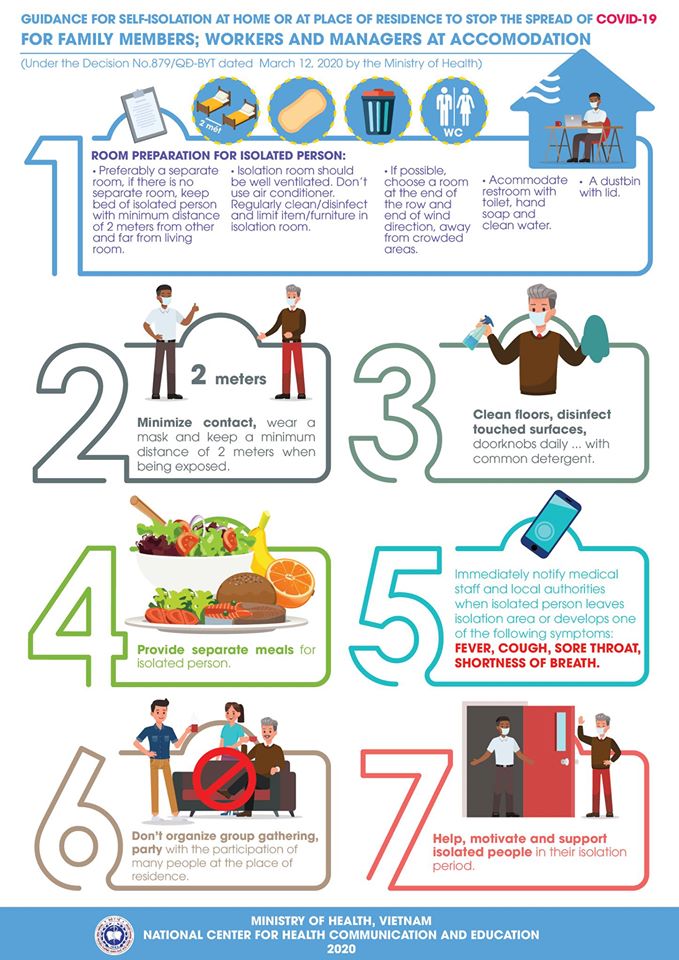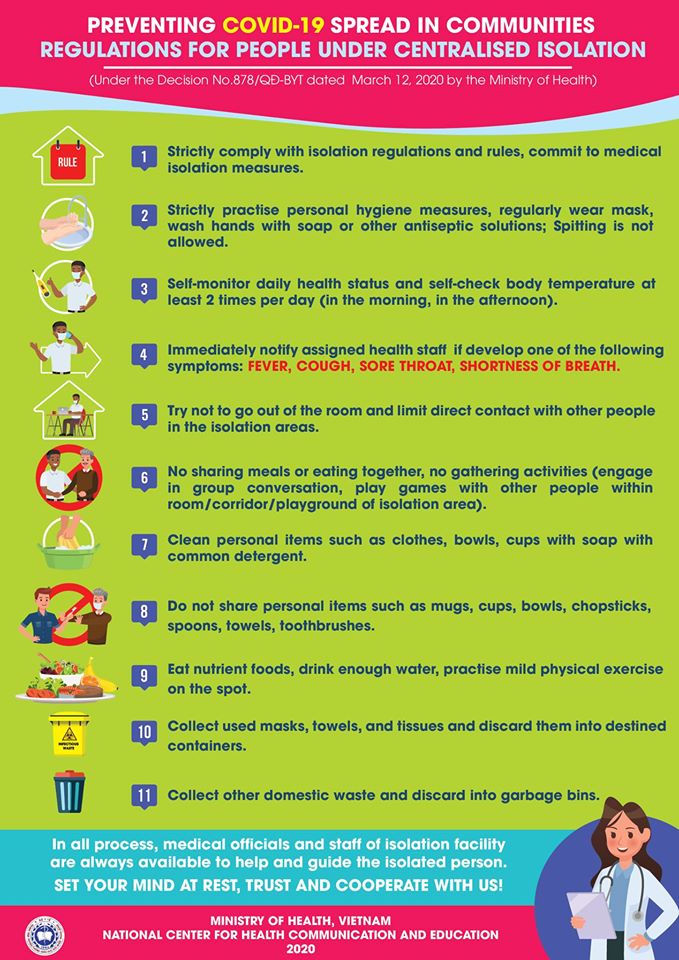 Issued by the Ministry of Health of Vietnam on March 19, the series gives detailed instruction on self-isolation, centralized-isolation and preventative measures.