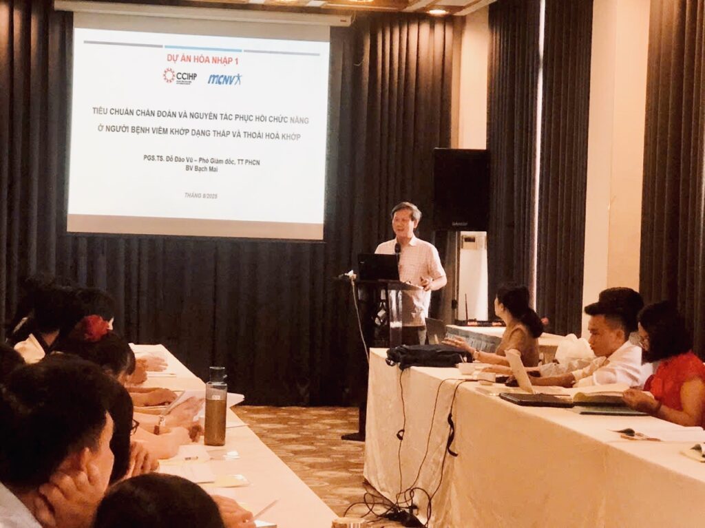 Assoc. Prof. Dr. Do Dao Vu, Deputy Director of the Rehabilitation Center at Bach Mai Hospital, presenting at the technical meeting in Hue city on August 17.