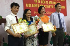 Also at the workshop, in recognition of the MCNV’s contributions to the development work in Dong Xuan for the past 10 years, the People’s Committee of Dong Xuan District awarded a certificate of merit from Phu Yen Provincial People’s Committee to MCNV Office in Central Vietnam and certificates of merit from Dong Xuan District People’s Committee to individual staff of MCNV Office in Central Vietnam, including Mr. Nguyen Dinh Dai (Chief of Office), Dr. Nguyen Thi Ngoc Lan (Program Coordinator) and Ms. Nguyen Thi Lan Phuong (Financial Manager).